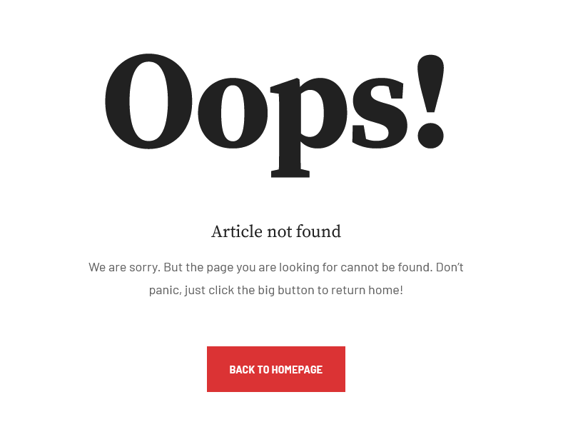Each JA Joomla Template has its own matching 404 page. Below is the screenshot of 404 page style.